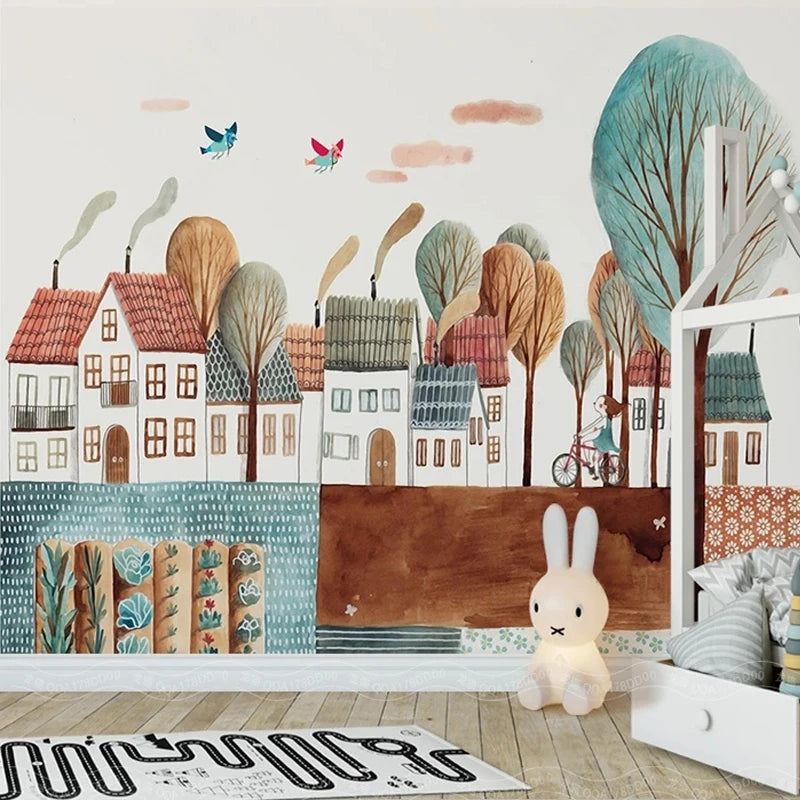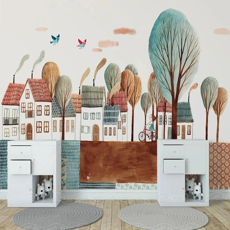 Pastel Color Storybook Town Mural Wallpaper