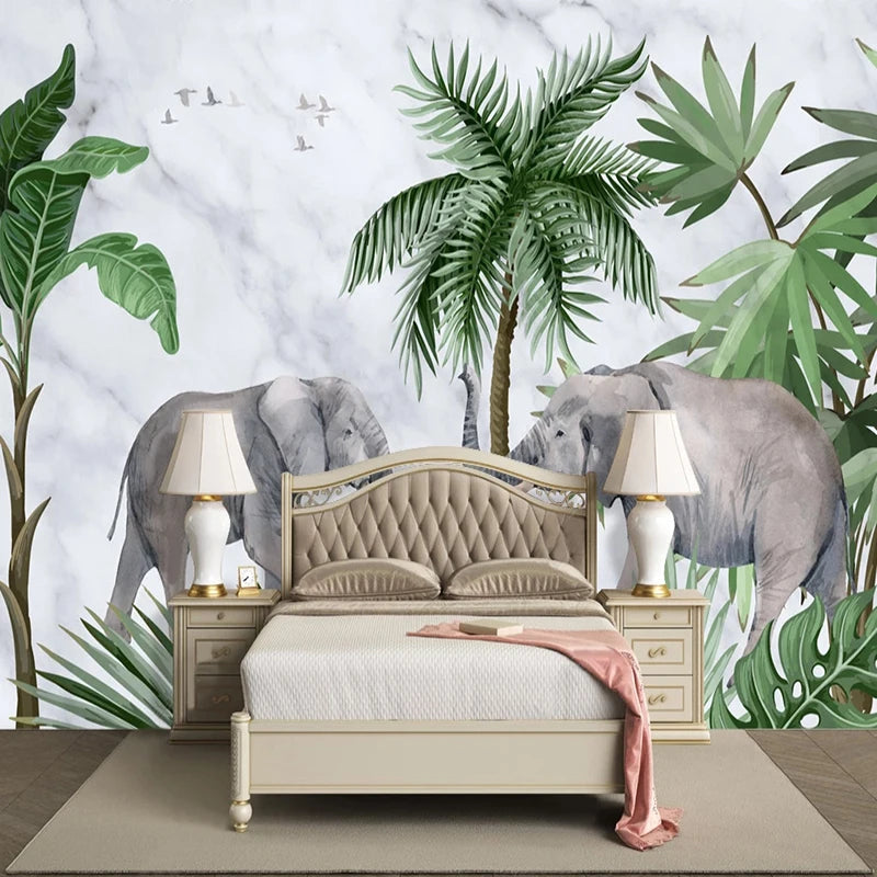 Tropical Elephants Marble Wall Mural Wallpaper