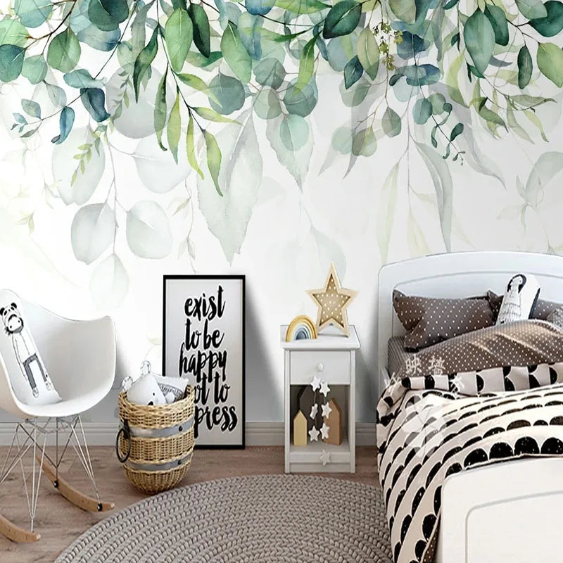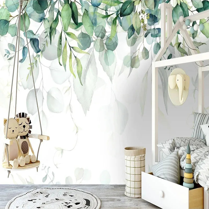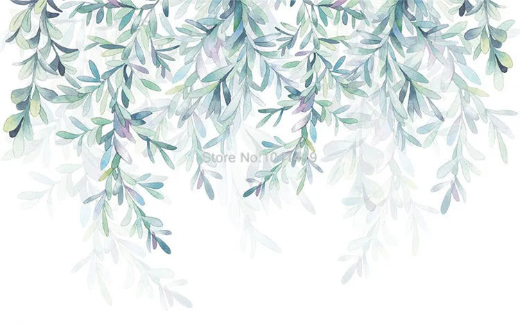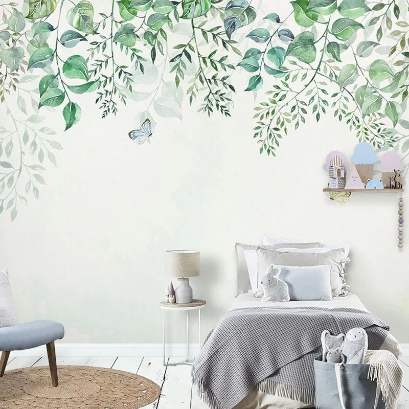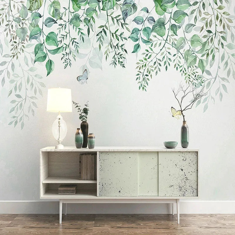 Watercolor Hanging Leaves Wall Mural Wallpaper
