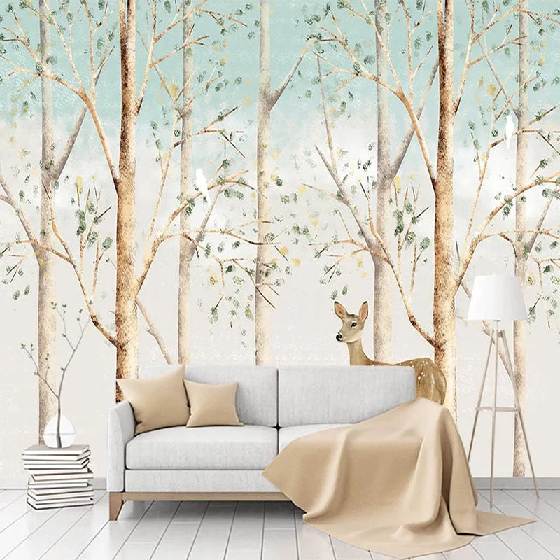 Woodland Fawns Tree Trunks Wall Mural Wallpaper