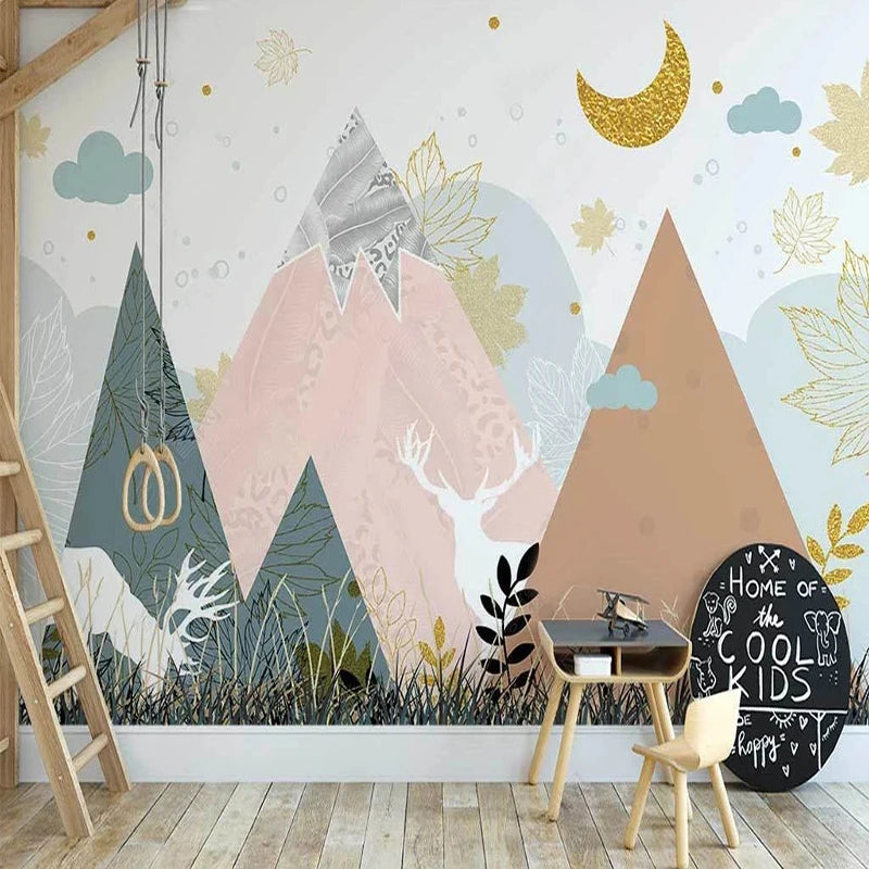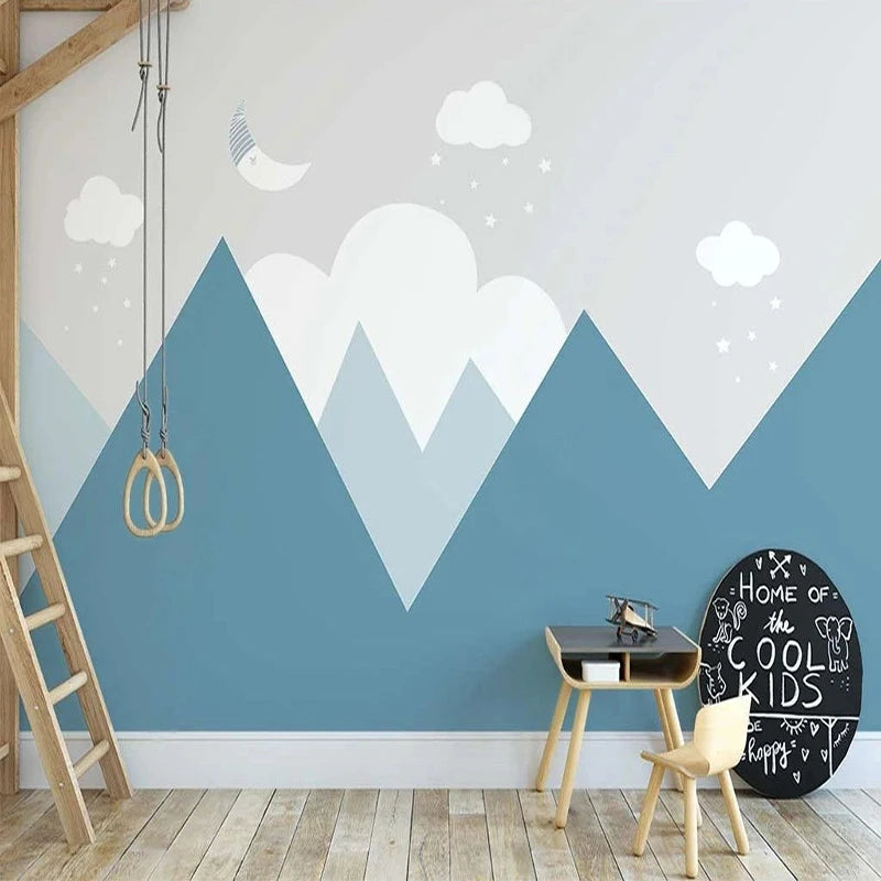 Geometric Blue Mountains Kids Room Wall Mural Wallpaper