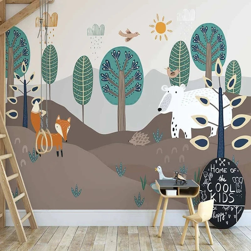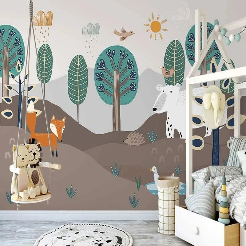 Layered Forest Landscape with Fox and Bear Wall Mural Wallpaper