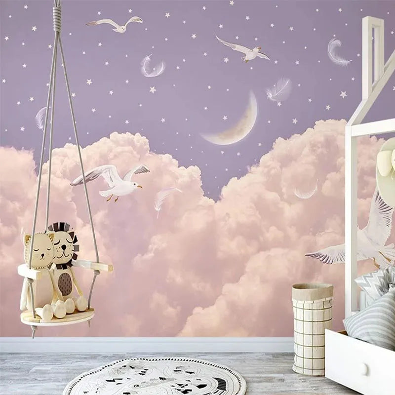 Celestial Clouds and Birds Nursery Wall Mural Wallpaper