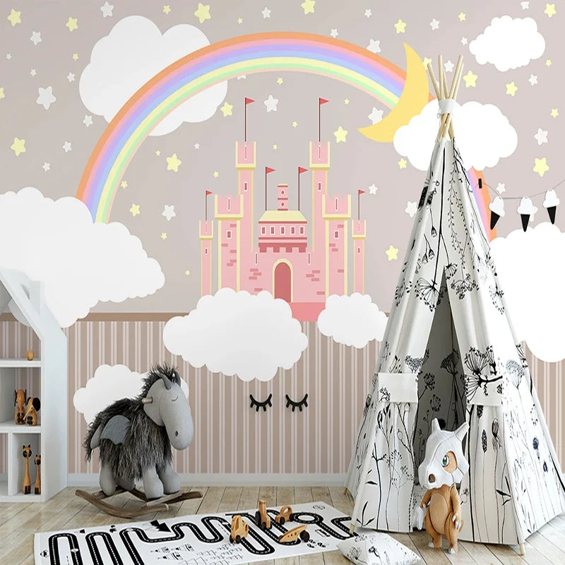 Rainbow Castle Clouds Nursery Wall Mural Wallpaper