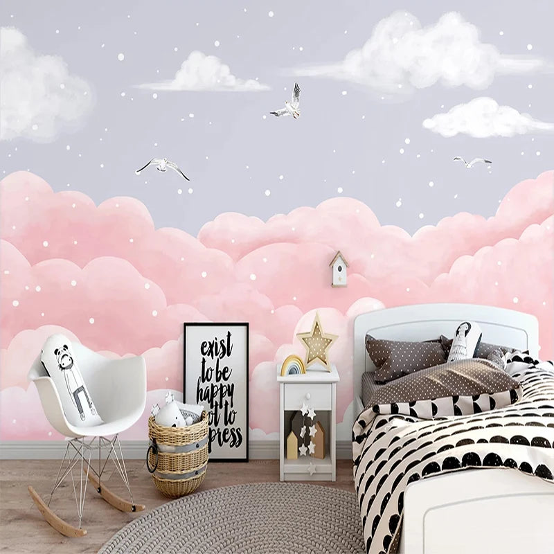 Pink Clouds Seagulls Nursery Wall Mural Wallpaper