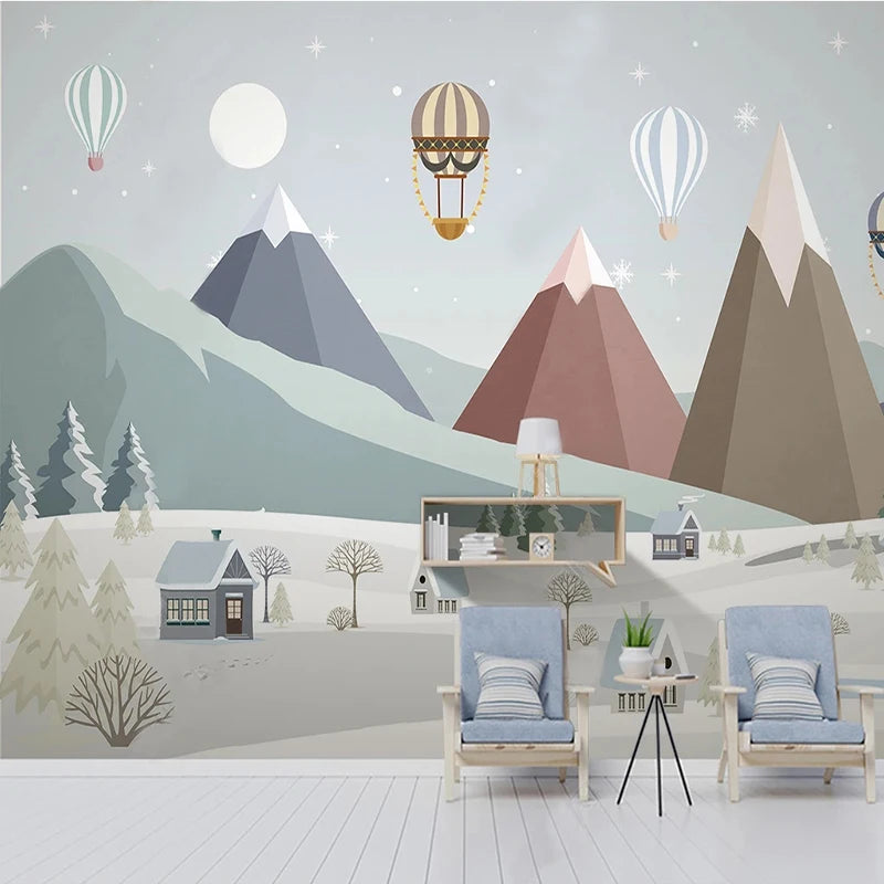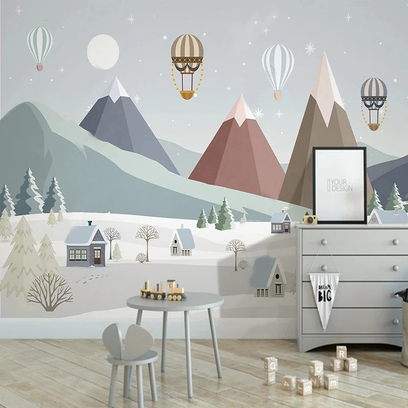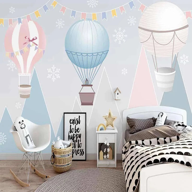 Balloon Ride Mountain Scene Nursery Wall Mural Wallpaper