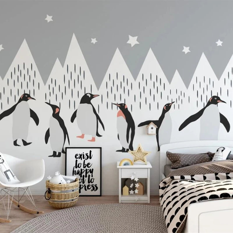 Arctic Penguins and Peaks Kids Room Wall Mural Wallpaper