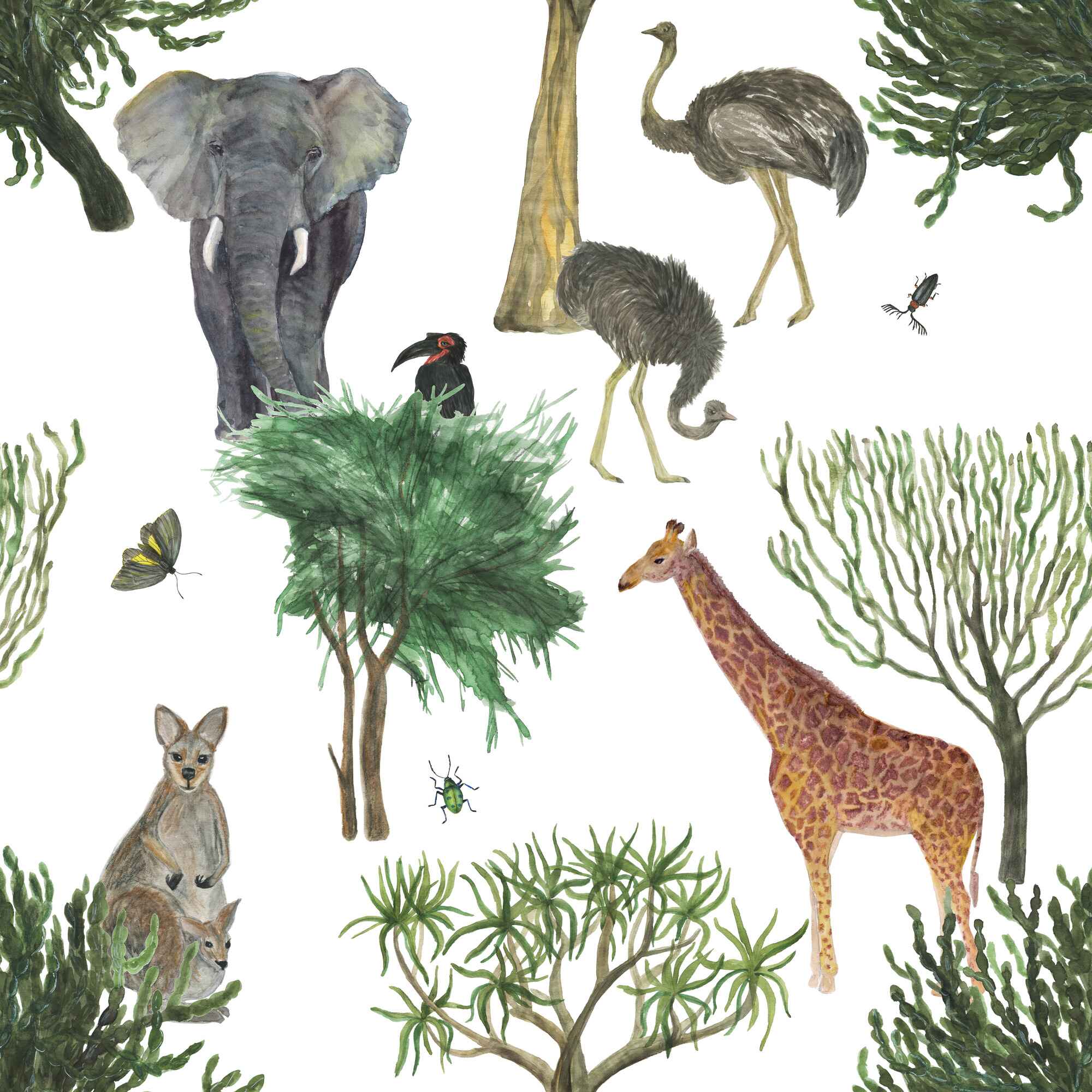 Tropical Cangaroo Elephant Giraffe Seamless Wallpaper