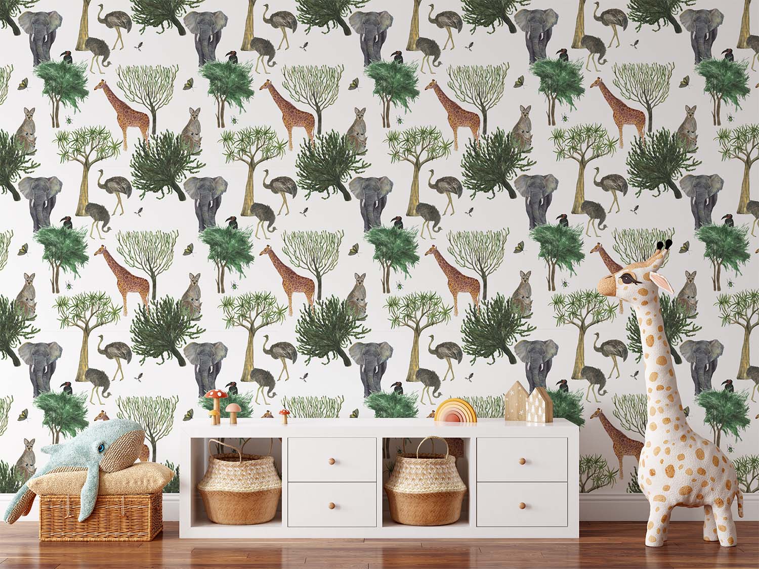 Explore woodland adventures with our charming woodland nursery wallpapers, bringing the beauty of nature's critters and lush forests into your child's space. Let your little one embark on an African safari right from their nursery with our safari-themed wallpapers, where they can explore the world of majestic animals and vibrant landscapes through captivating designs. From adorable pets to exotic creatures, our animal-themed wallpapers ignite curiosity and make learning fun.