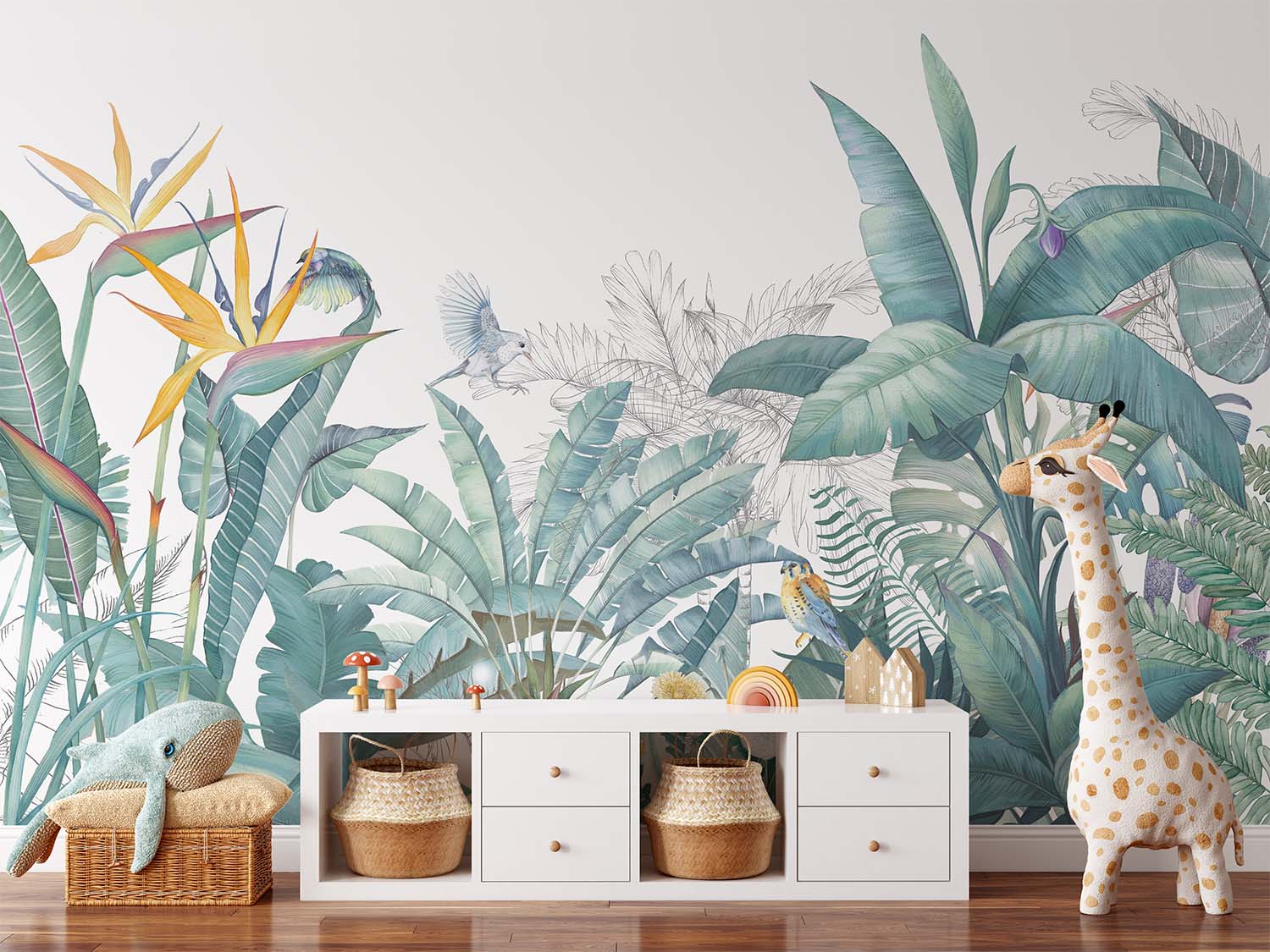 Painted Tropical Wildlife Cartoon Wallpaper Mural