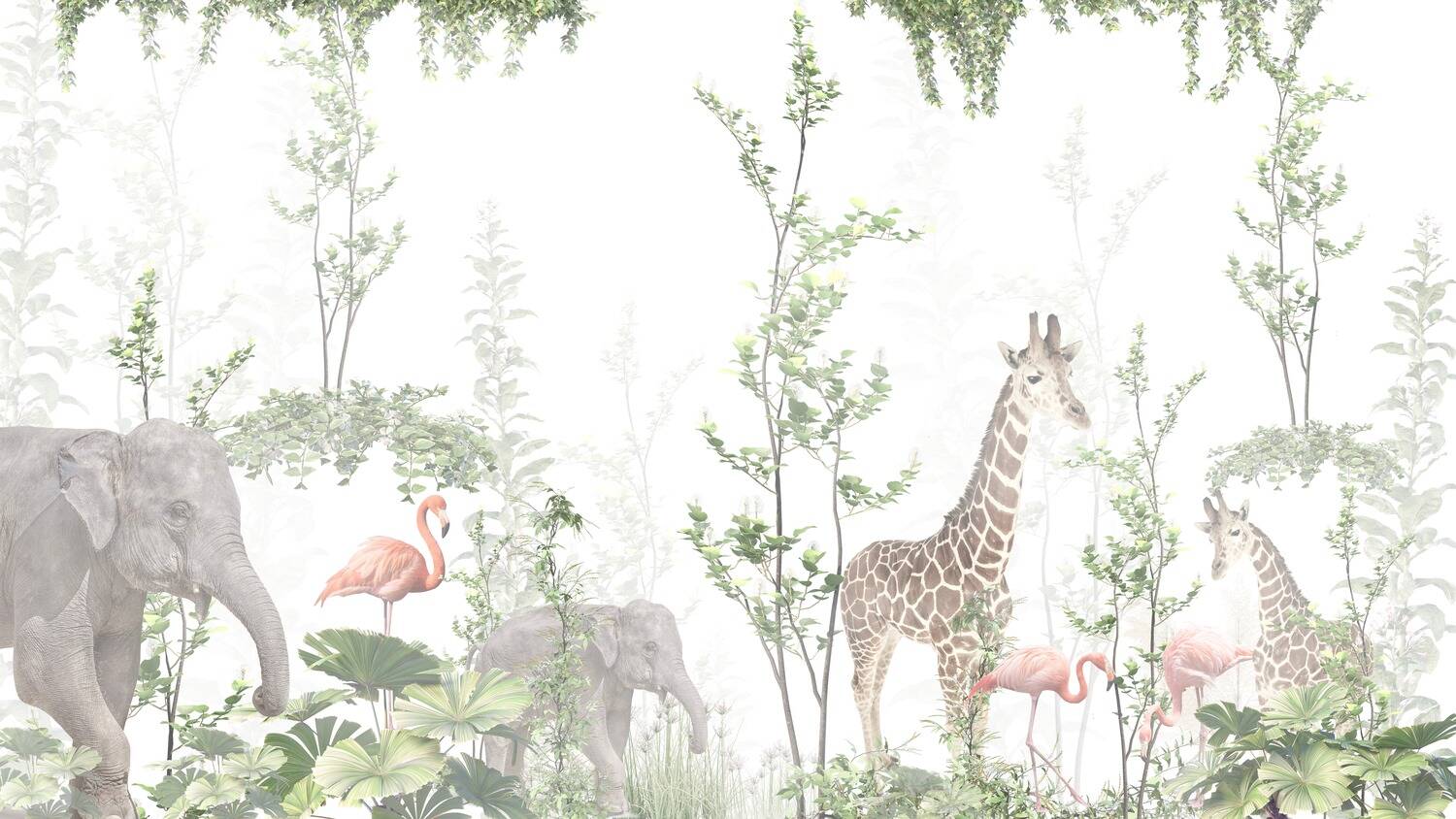 Light Green Painted Giraffe and Elephant Wallpaper Mural