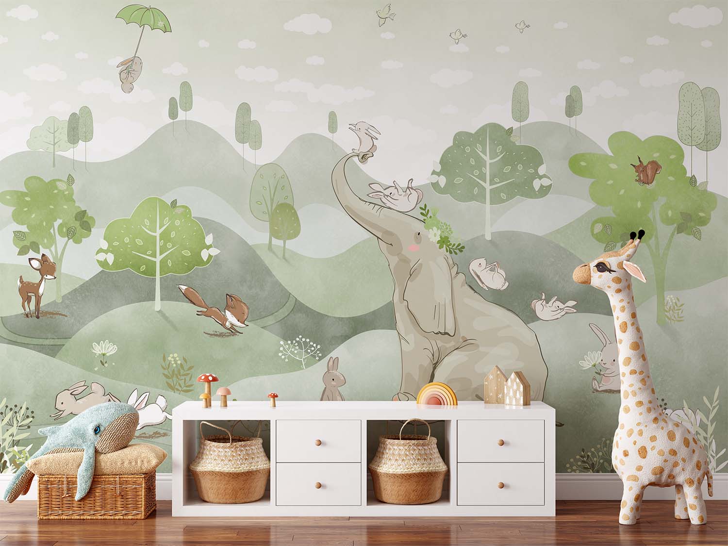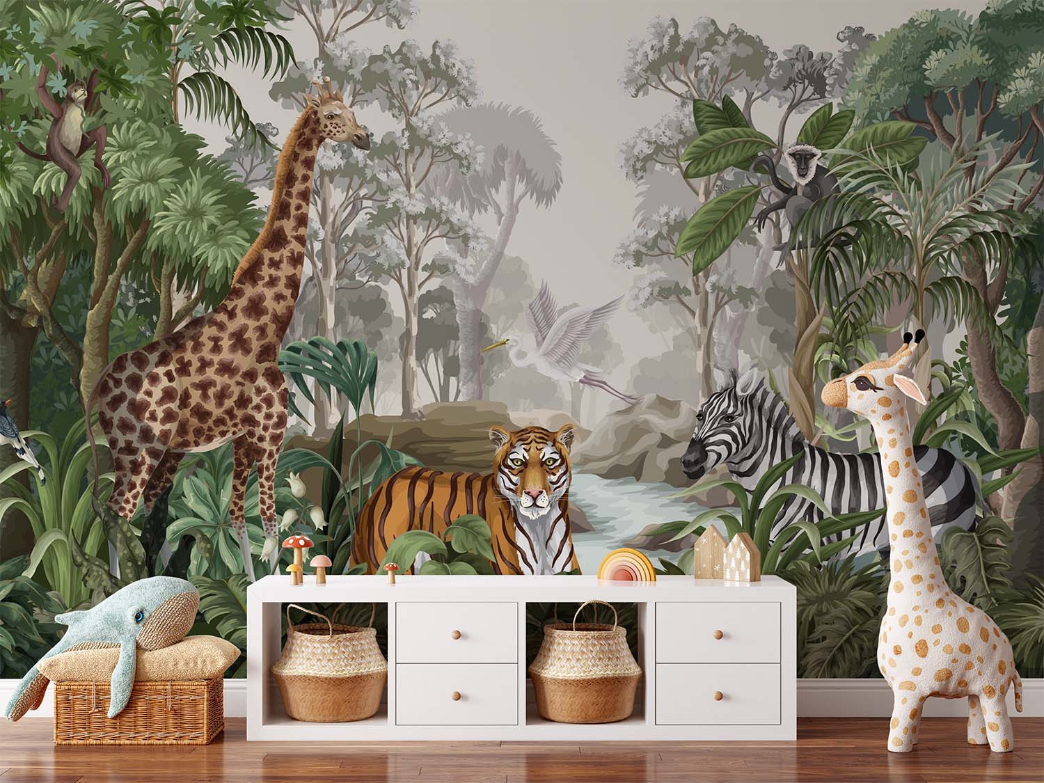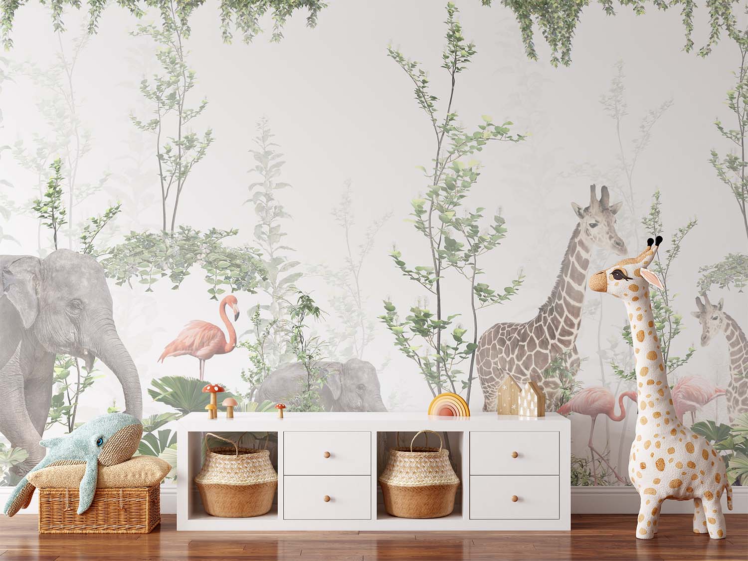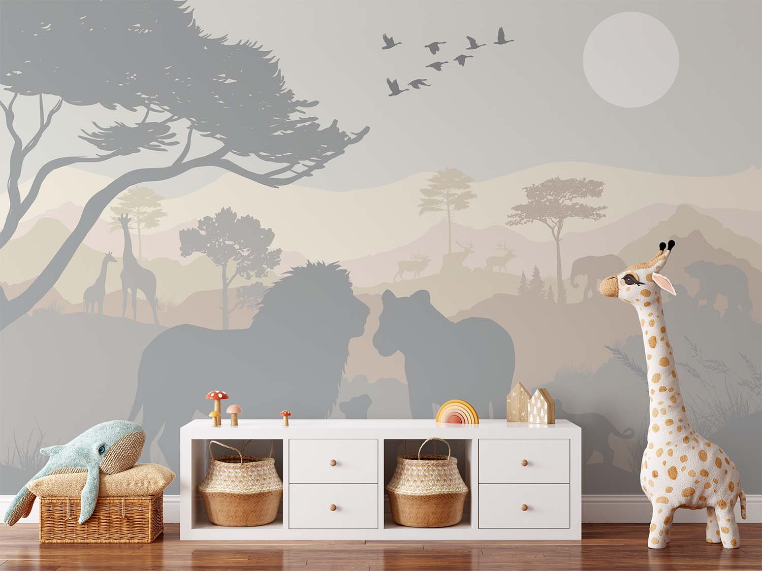 Explore woodland adventures with our charming woodland nursery wallpapers, bringing the beauty of nature's critters and lush forests into your child's space. Let your little one embark on an African safari right from their nursery with our safari-themed wallpapers, where they can explore the world of majestic animals and vibrant landscapes through captivating designs. From adorable pets to exotic creatures, our animal-themed wallpapers ignite curiosity and make learning fun.