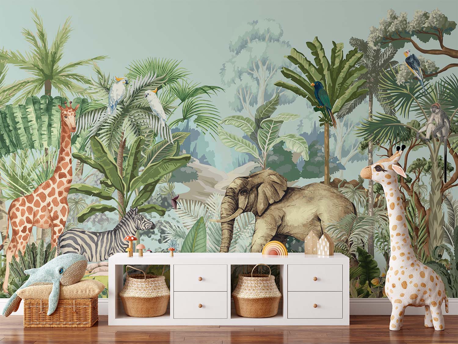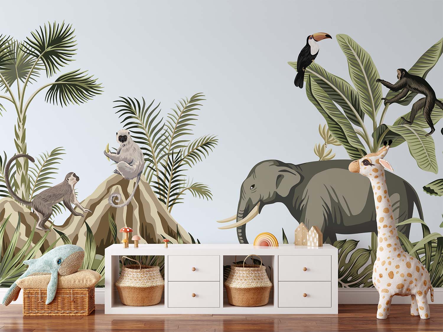 Jungle and Mountains Animals Adventure Wallpaper Mural