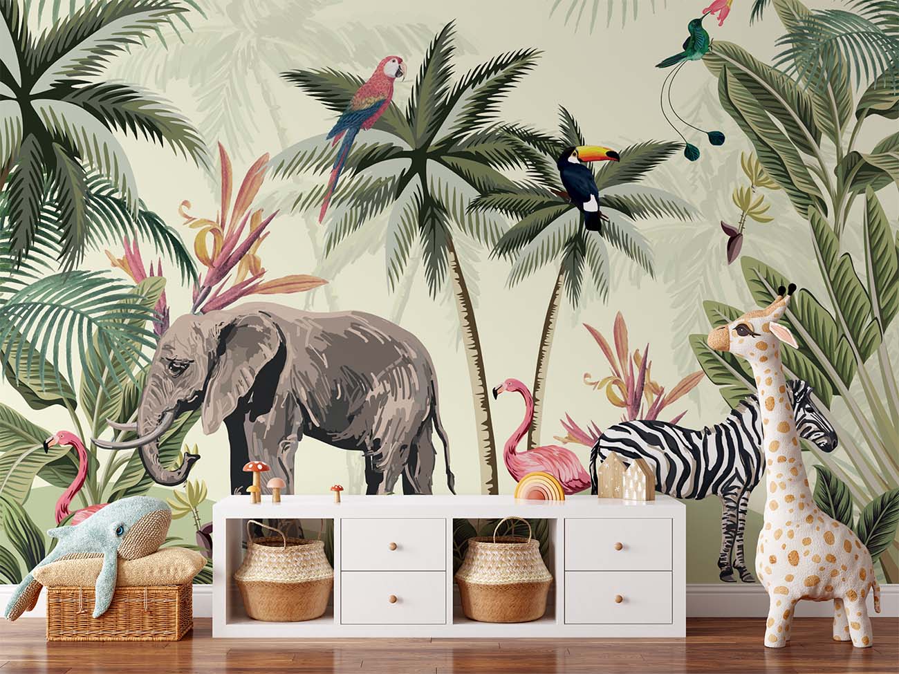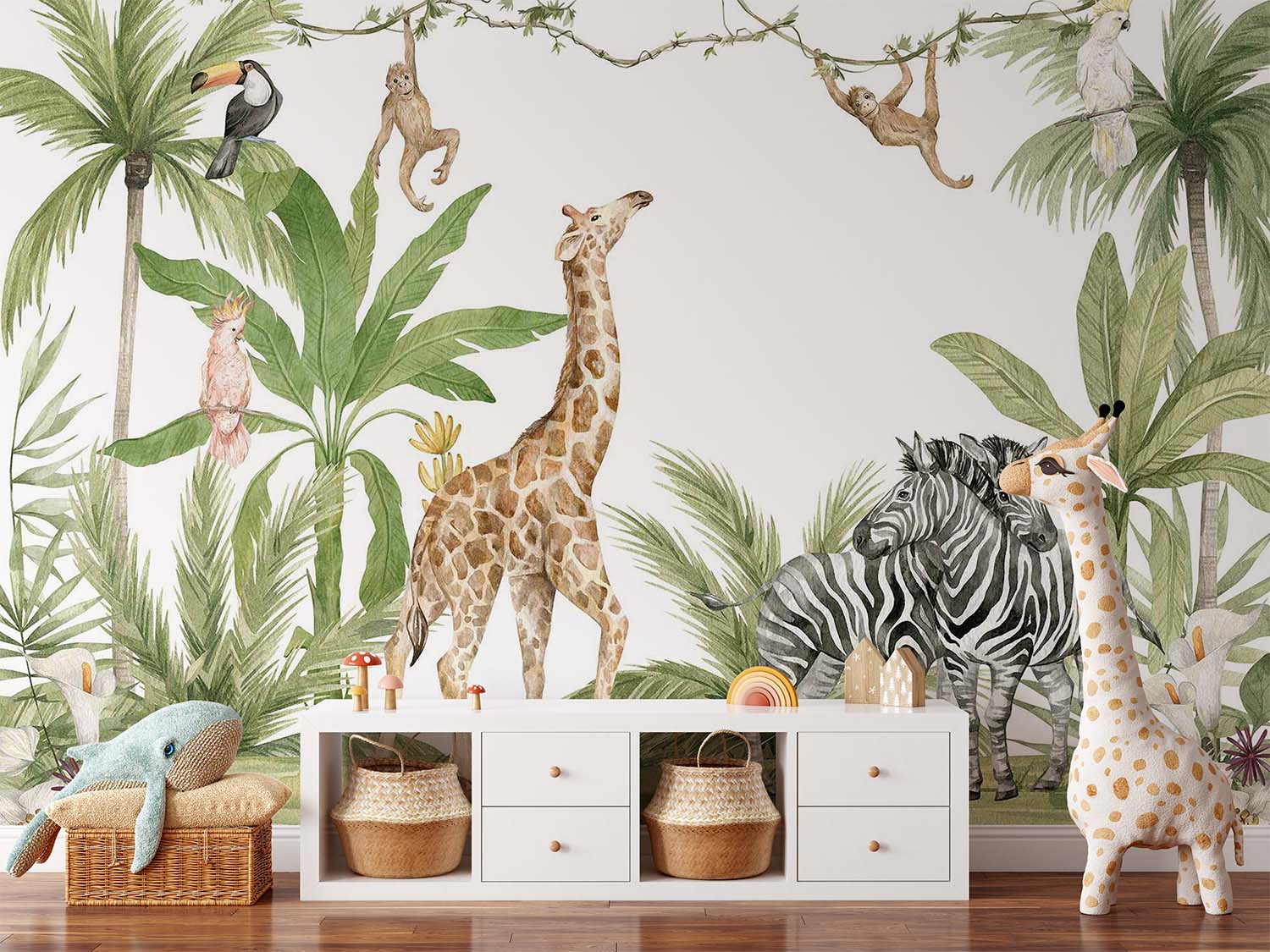 Explore woodland adventures with our charming woodland nursery wallpapers, bringing the beauty of nature's critters and lush forests into your child's space. Let your little one embark on an African safari right from their nursery with our safari-themed wallpapers, where they can explore the world of majestic animals and vibrant landscapes through captivating designs. From adorable pets to exotic creatures, our animal-themed wallpapers ignite curiosity and make learning fun.