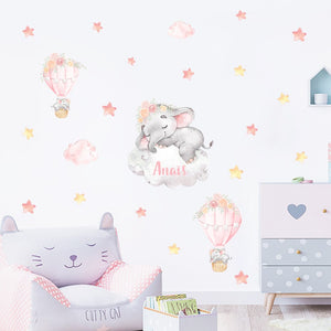 Cartoon Wall Decals Elephant on Hot Air Balloon