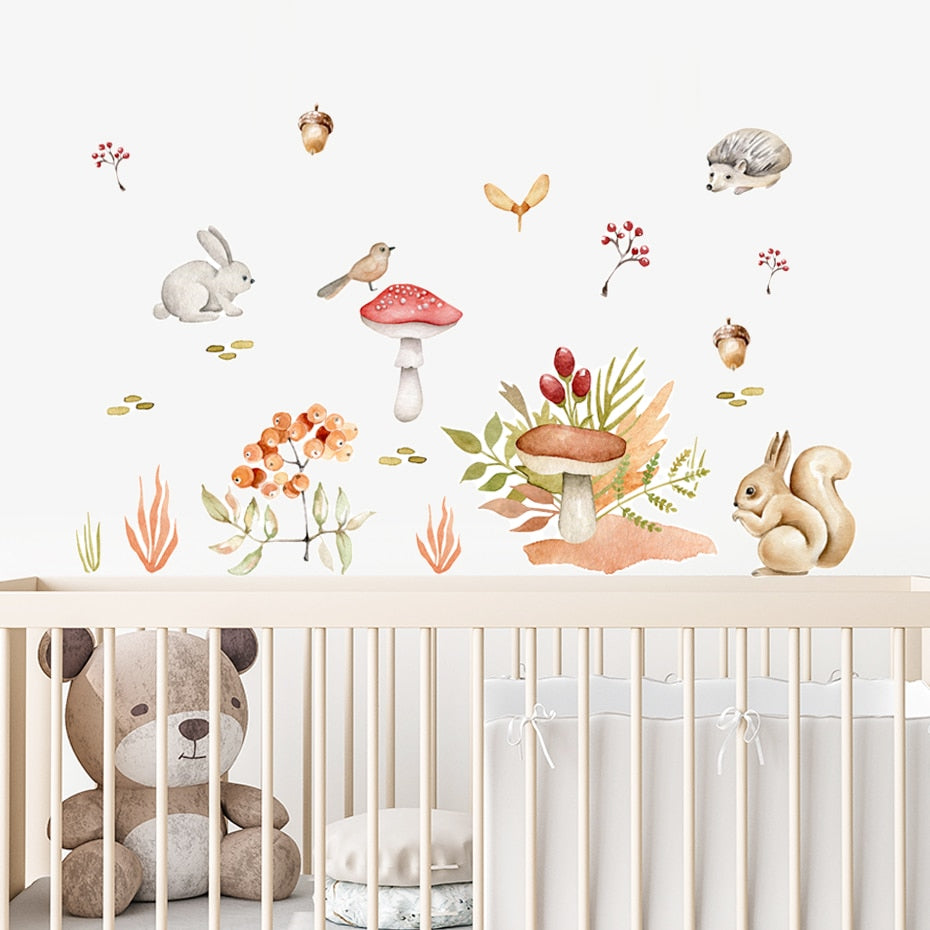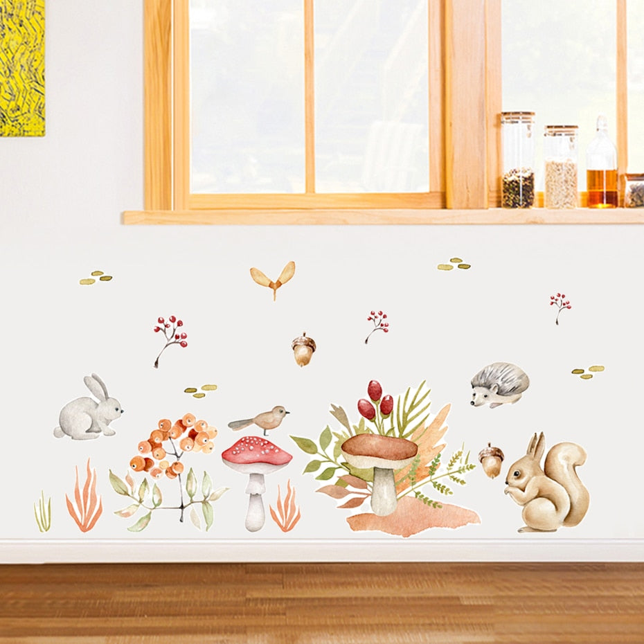 Cartoon Wall Decals Forest Animals Mushroom Acorn