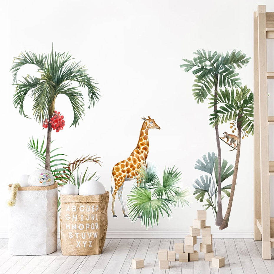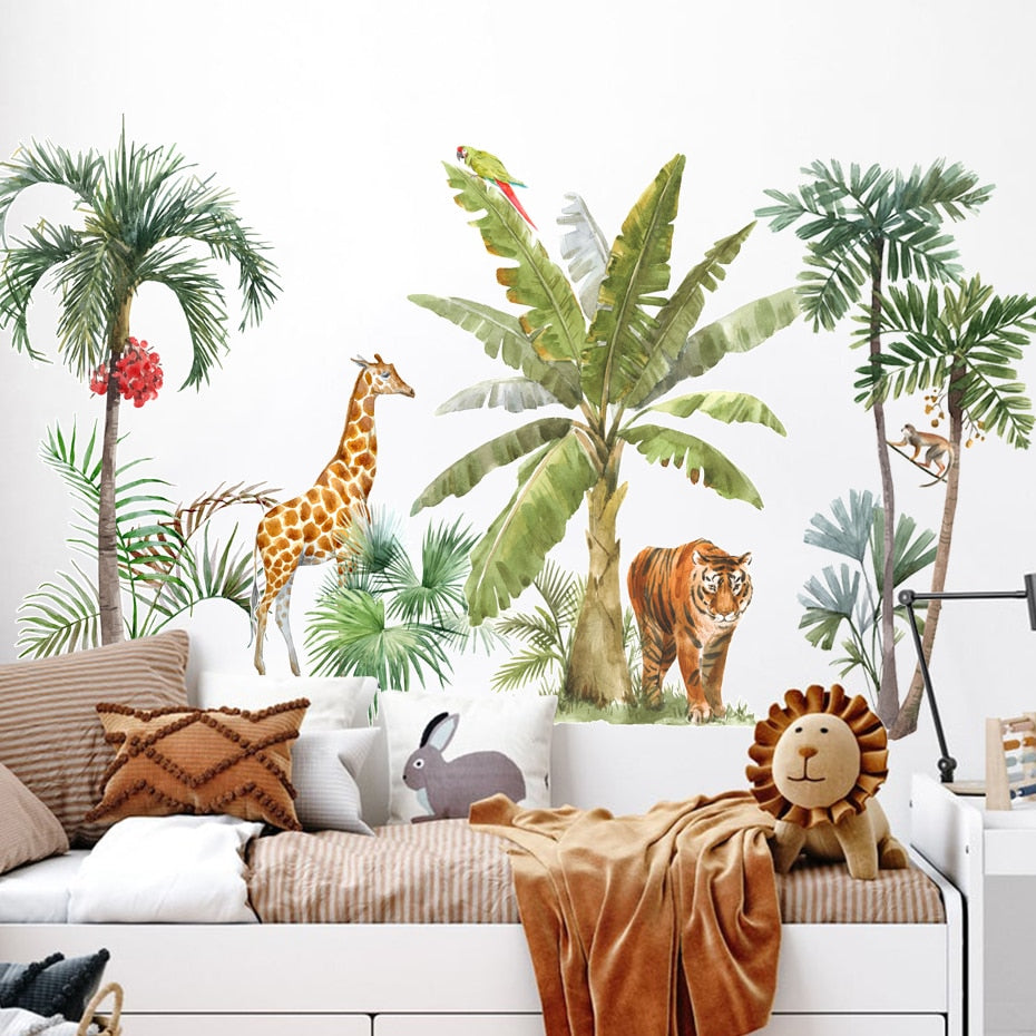 Nursery Wall Decals African Animals Tropical Tree