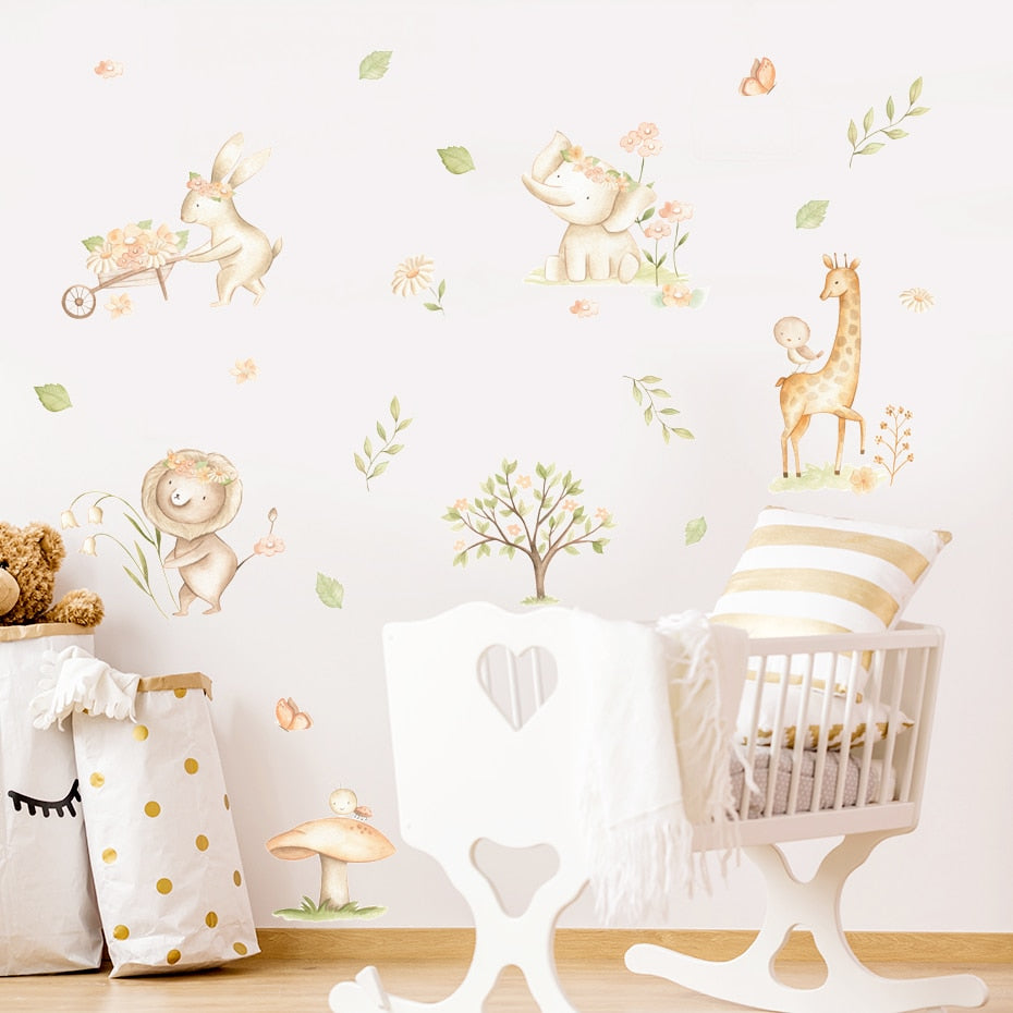 Cartoon Wall Decals Cute Lion Elephant Animals