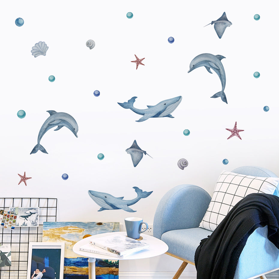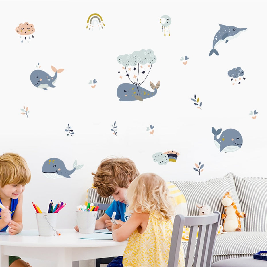 Cartoon Wall Decals Cute Ocean Whale Dolphin