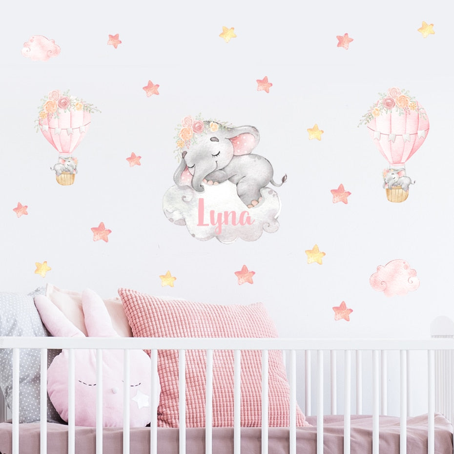 Cartoon Wall Decals Elephant on Hot Air Balloon
