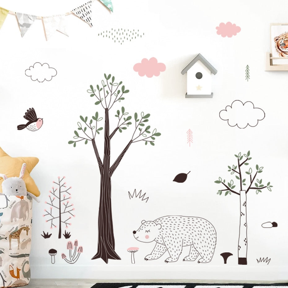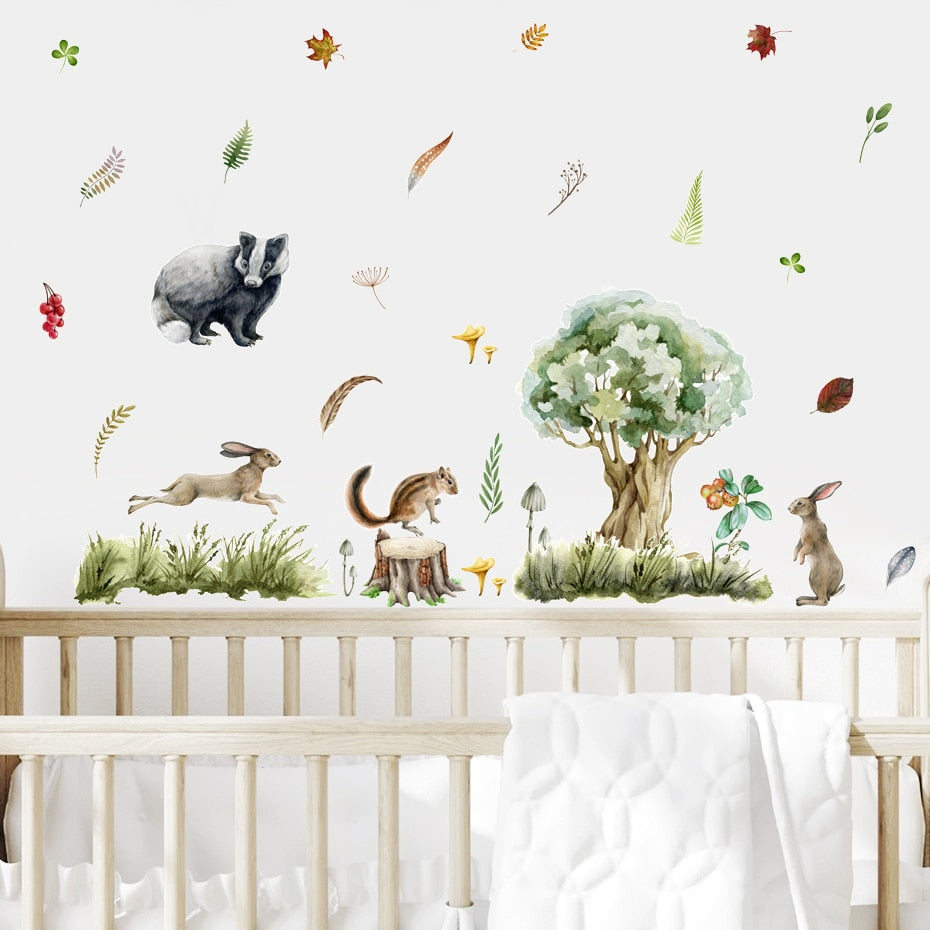 Nursery Wall Decal Forest Wildlife Bear Rabbit