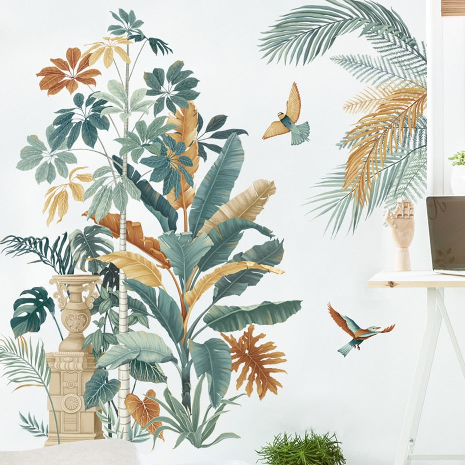 Cartoon Wall Decals Rainbow Dinosaur Tropical Leaves
