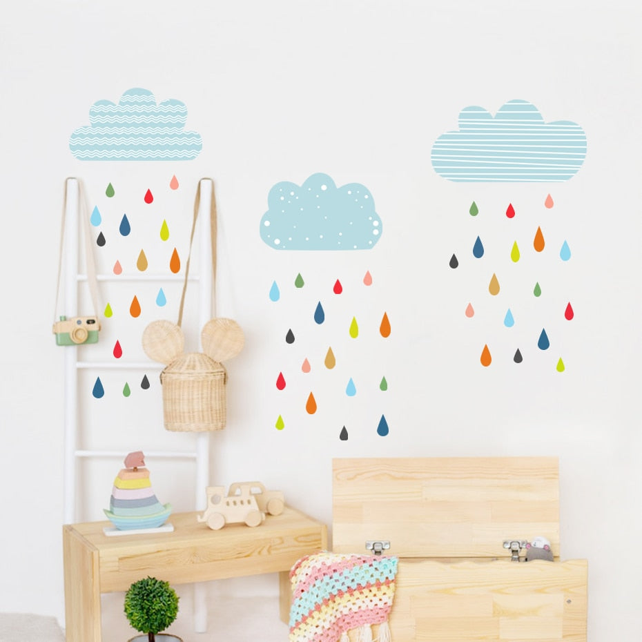 Cartoon Wall Decals Clouds Colorful Raindrops