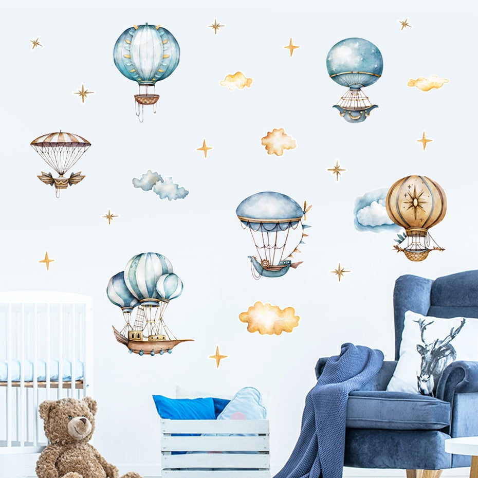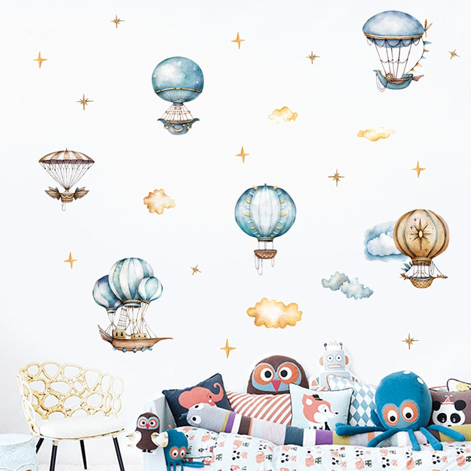 Cartoon Wall Decals Hot Air Balloon Sky