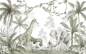 Light Green Safari Animals Wallpaper Mural